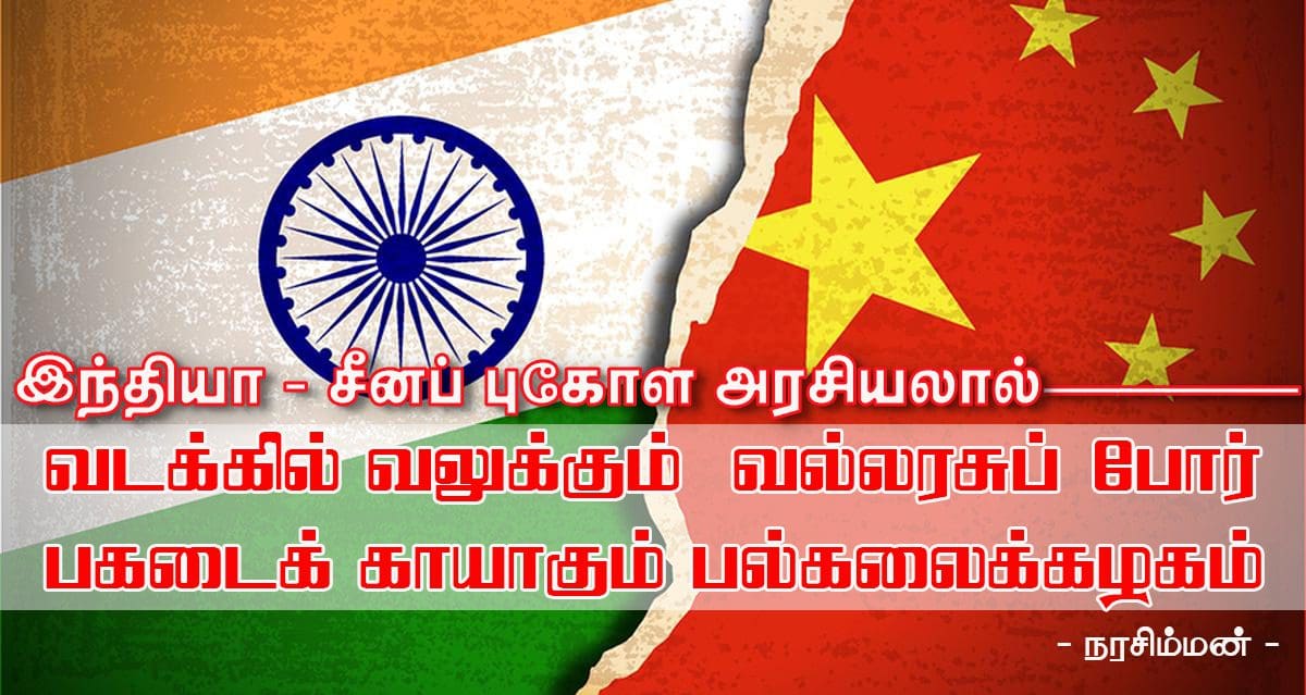 தென்கிழக்காசியப் பிராந்தியத்தின் வல்லாதிக்கப் போட்டியின் வெளிப்பாடாக இந்தியாவுக்கும், சீனாவுக்கும் இடையிலான பூகோள அரசியல் சுழலில் இலங்கை சிக்கிச் சின்னாபின்னமாகிக் கொண்டிருக்கிறது. இரு நாடுகளும் தமக்கிடையேயான பூகோள அரசியல் போரை இதுவரை காலமும் மறைமுகமாகவே மேற்கொண்டிருந்தன. ஆனால் தற்போது குடுமிப்பிடியாக வீதியில் நின்று அடிபடுமளவுக்கு நடந்து கொள்கின்றன.