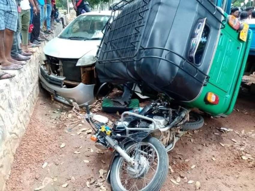 கிளிநொச்சி டிப்போ சந்தியில் கன்டர் ரக வாகனம் வீதியைவிட்டு கீழ் இறங்கி, நிறுத்தி வைக்கப்பட்டிருந்த கார் மற்றும் முச்சக்கரவண்டி மீது மோதி, இவ்விபத்துச் சம்பவம் இடம்பெற்றுள்ளது.