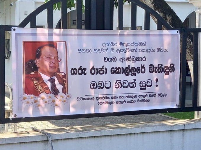 வடமேல் மாகாணத்தில் வைக்கப்பட்டுள்ள அனுதாப பதாகையில் வடமேல் மாகாண ஆளுநர் ராஜா கொல்லுரேவின் படத்துக்குப் பதிலாக ஊவா மாகாண ஆளுநர் ஏ.ஜே.எம். முஸமில்லின் படம் பொறிக்கப்பட்டுள்ளது.