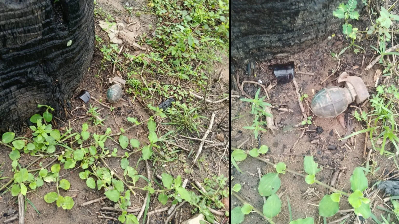 அண்மையில் இந்தக் காணியில் உழவுப் பணிகள் மேற்கொள்ளப்பட்டதாலும், பெய்த மழை காரணமாக மண் அரிப்பு ஏற்பட்டதாலும் நிலத்தில் புதைந்திருந்த கைக்குண்டு வெளியே தெரிந்துள்ளது.
