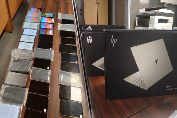 விமான நிலையத்தை விட்டு இவர்கள் வெளியேறும்போது, அவர்களது பயணப்பைகள் அதிகாரிகளால் சோதனையிடப்பட்ட வேளை மறைத்து வைக்கப்பட்டிருந்த கையடக்க தொலைபேசிகள் மற்றும் மடிக்கணினிகள் கண்டெடுக்கப்பட்டதுடன் சந்தேக நபர்களும் கைது செய்யப்பட்டனர்.