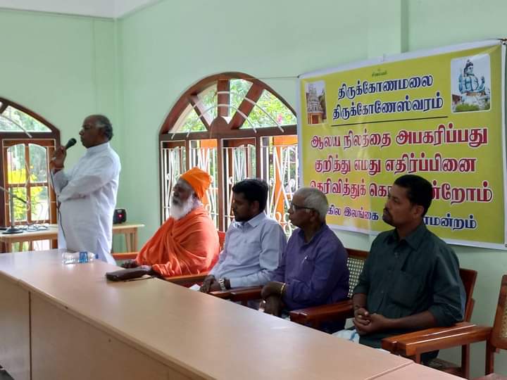 ஈழத்தில் வரலாற்றுச் சிறப்புமிக்க, தேவார பாடல் பெற்ற தலமான திருக்கோணேஸ்வரம் ஆலய நிலம் ஆக்கிரமிக்கப்படுவதற்கு எதிர்ப்பு தெரிவித்து, அதைத் தடுக்கும் நோக்கில் யாழ்ப்பாணத்தில் இன்று (11) விசேட சந்திப்பு ஒன்று இடம்பெற்றது.