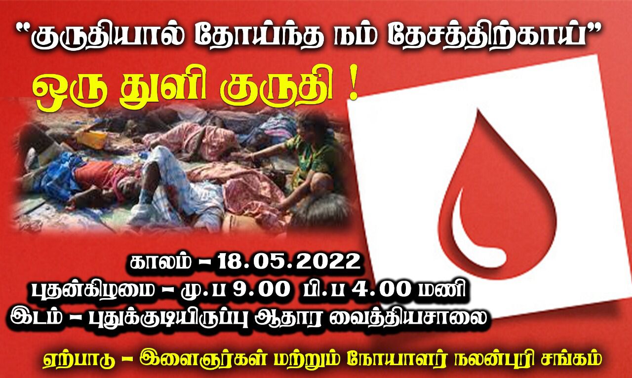 ‘குருதியால் தோய்ந்த நம் தேசத்துக்காக ஒரு துளி குருதி’ என்ற தொனிப்பொருளில் இந்த நிகழ்வு நடைபெறவுள்ளது.