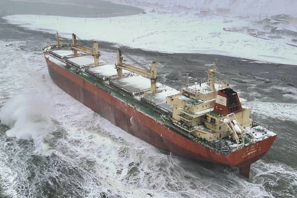 இப்பகுதி கடுமையான புயல் நிலவியதால் சீன சரக்கு கப்பல் தரை தட்டியதாக கூறப்படுகிறது.