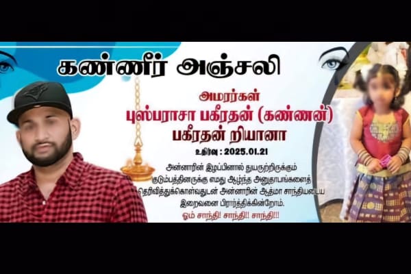 குறித்த விபத்தில், யாழ்ப்பாணம் நீர்வேலி பகுதியை பூர்வீகமாக கொண்டவரும் தற்போது கனடாவில் வசித்து வருபவருமான புஸ்பராஜா பகீரதன் (வயது 40) அவரது மகளான பகீரதன் றியானா (வயது 03) ஆகியோரே உயிரிழந்துள்ளனர்.