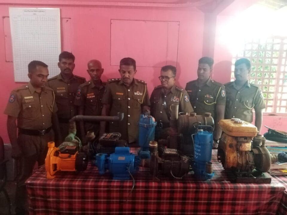 விசாரணைகளின் அடிப்படையில் நான்கு நபர்களை சந்தேகத்தின் அடிப்படையில் கைது செய்து அவர்களிடம் முன்னெடுக்கப்பட்ட விசாரணைகளில் அவர்களிடம் இருந்து சுமார் 5 இலட்ச ரூபாய் பெறுமதியான 7 நீர் இறைக்கும் மின் மோட்டார்களை மீட்டுள்ளனர்.