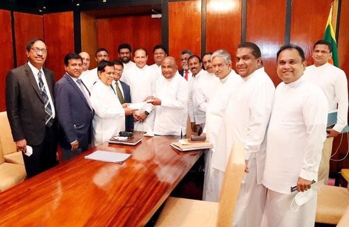 ஸ்ரீலங்கா பொதுஜன முன்னணி, ஸ்ரீங்கா சுதந்திரக்கட்சி, விமல் வீரவன்ச அணி, உதய கம்மன்பில அணி உள்ளிட்ட 11 கட்சிகளைச் சேர்ந்த நாடாளுமன்ற உறுப்பினர்களே இந்த யோசனை வரைபை சபாநாயகரிடம் சமர்ப்பித்துள்ளனர்.
