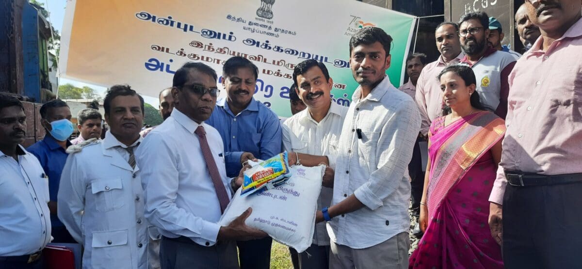 யாழ்ப்பாணத்துக்கான இந்திய துணைத் தூதர் ராகேஷ் நடராஜ் ஜெயபாஸ்கரன் சம்பிரதாயபூர்வமாக நிவாரணப் பொதியை யாழ் மாவட்ட அரசாங்க அதிபர் கணபதிப்பிள்ளை மகேசனிடம் கையளிக்கப்பட்டது.