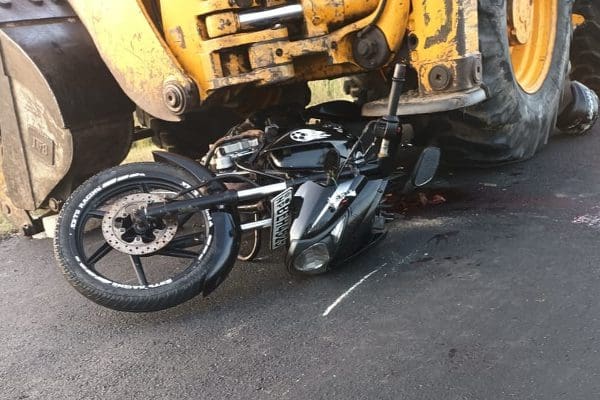 மோட்டர் சைக்கிளில் பயணித்த பொலிஸ் அதிகாரி எதிரே வந்த ஜே.சி.பி வாகனத்தினுள் அகப்பட்டு சம்பவ இடத்திலேயே உயிரிழந்துள்ளார்.