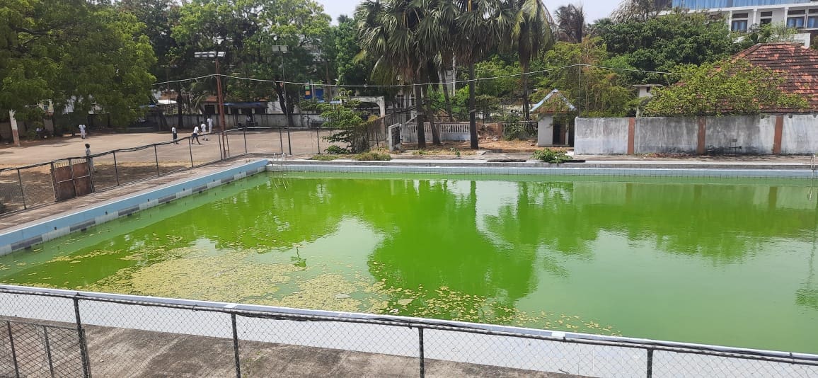 யாழ்ப்பாணம் மத்திய கல்லூரி நீச்சல் தடாகம் பராமரிப்புகள் இன்றி பாசிகள் படர்ந்து , பாழடையும் நிலையில் காணப்படுகிறது.