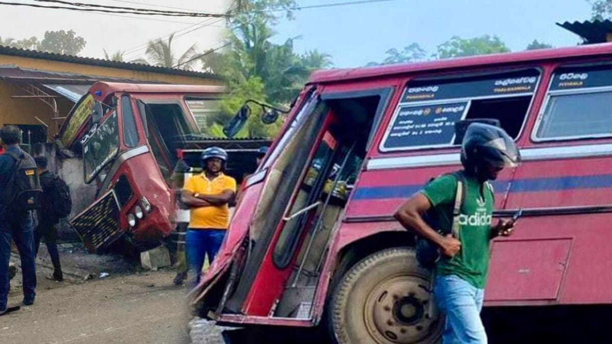 ஒரே திசையில் பயணித்த முச்சக்கரவண்டி ஒன்று திடீரென வலது பக்கம் நோக்கி திரும்ப முற்பட்டதில் பேருந்து வீதியை விட்டு விலகி சுவரில் மோதுண்டு விபத்திற்குள்ளாகியுள்ளது.