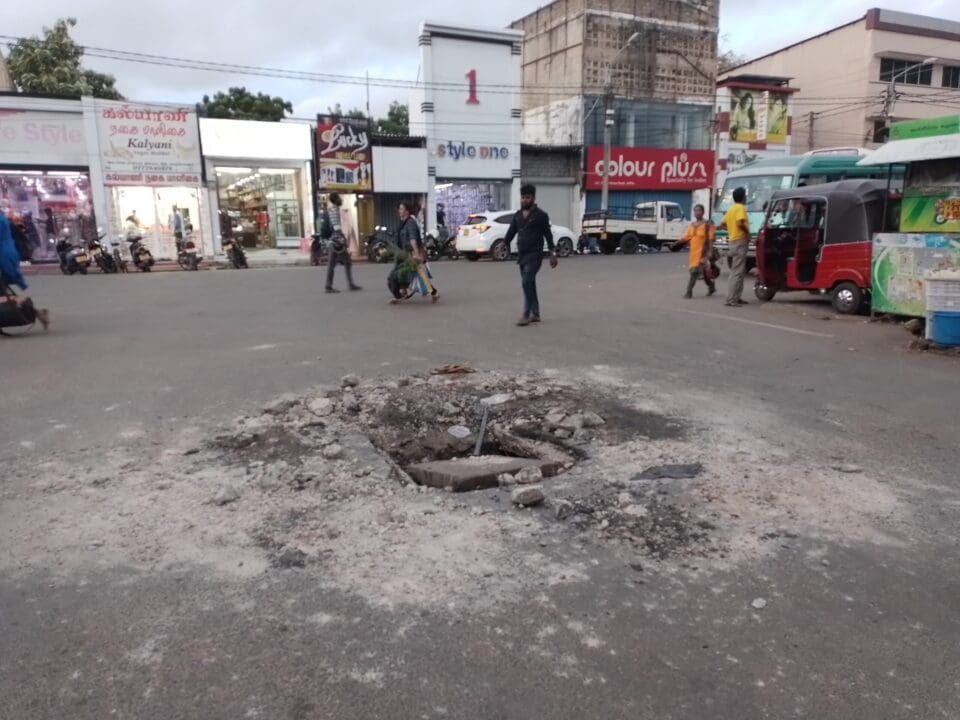 யாழ் நகரின் மத்தியில் பாரிய குழி!!