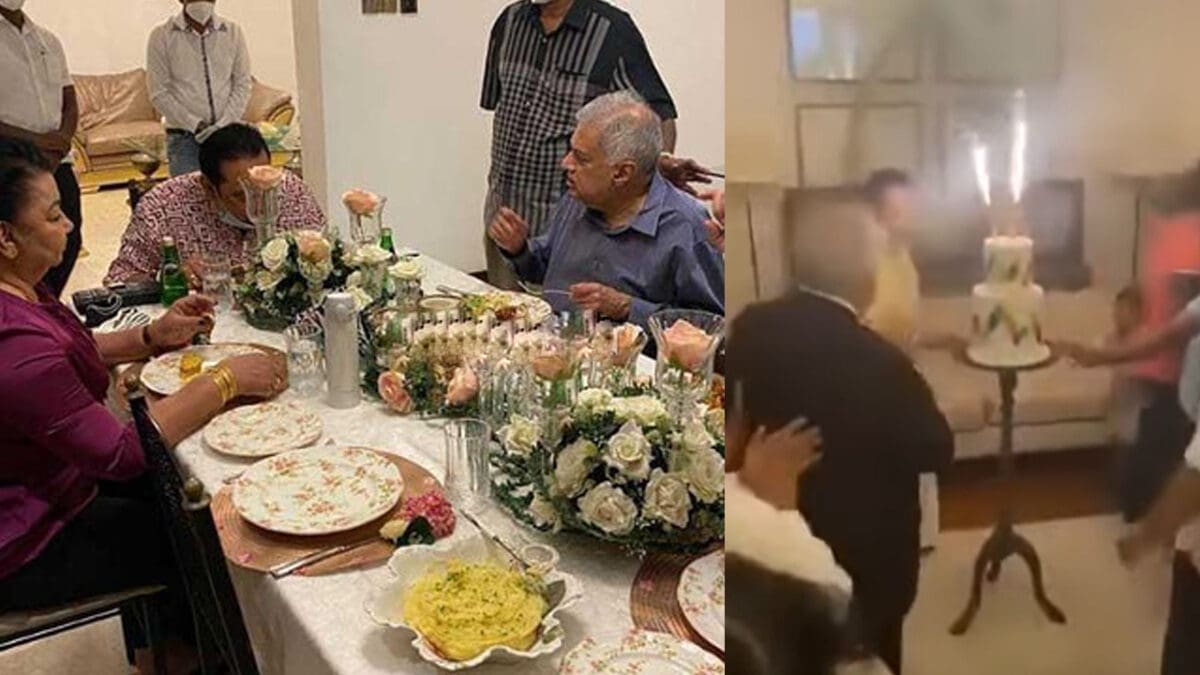 அவர்கள் அனைவருடனும் பிறந்தநாள் வாழ்த்துக்களில் கலந்து கொண்ட ரணில், மாலைதீவில் இருந்து வெளிநாட்டவர் ஒருவர் நிகழ்வுக்கு வந்திருப்பதாகக் கூறி அங்கிருந்து சிறிது நேரத்திலேயே வெளியேறியுள்ளார்.