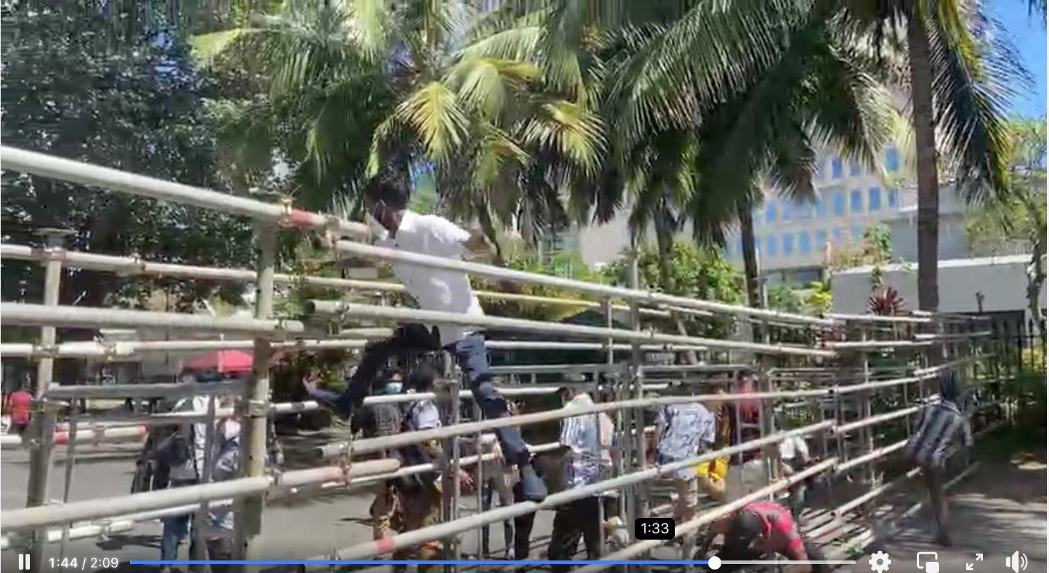 அதேநேரம், பெருந்தோட்டத் தொழிலாளர்கள் ஒன்றிணைந்து கொழும்பு கோட்டை ரயில் நிலையத்துக்கு முன்பாகவிருந்து காலிமுகத்திடலை நோக்கிப் பேரணியாக செல்லும் வழியில் லோட்டஸ் வீதிக்கருகே போடப்பட்டிருக்கும் வீதித் தடைக்கருகில் பொலிஸாரால் தடுத்து நிறுத்தப்பட்டுள்ளனர்.