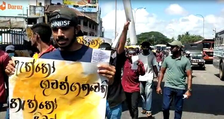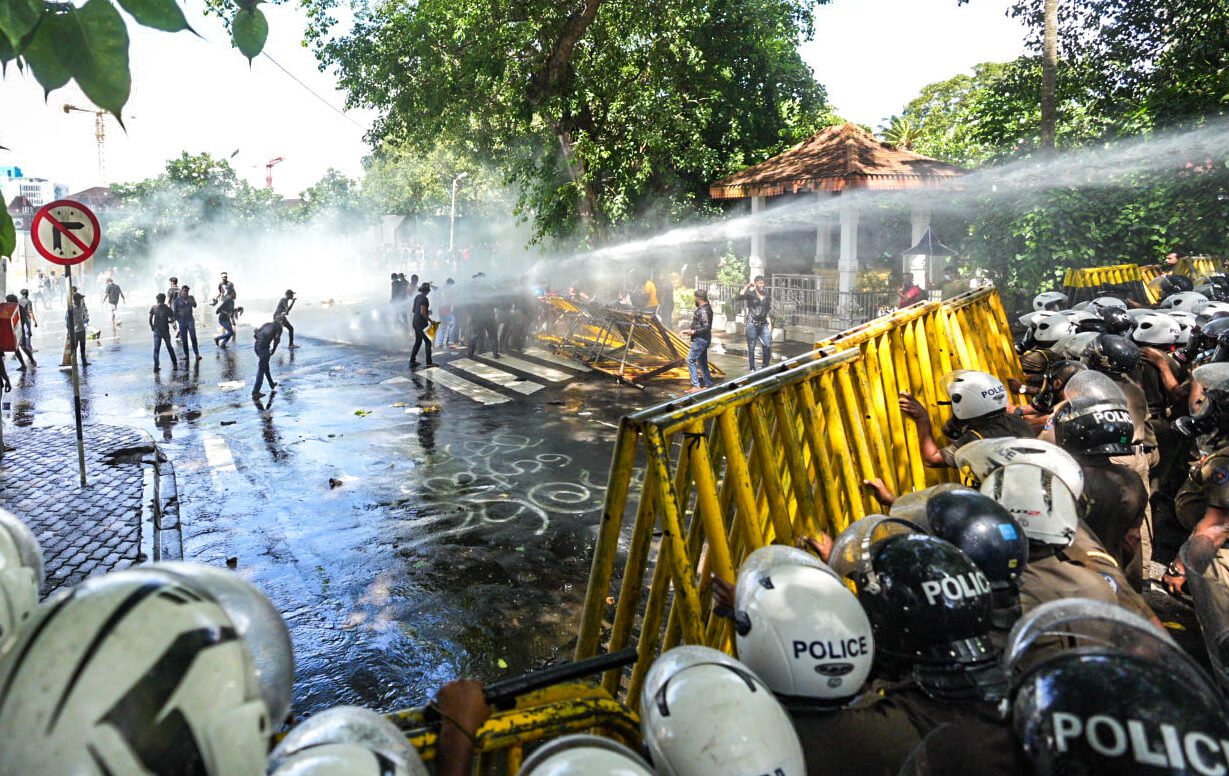 ‘கோட்டா வீட்டுக்குப் போ’ என்ற கோஷத்துடன் உயர் தேசிய டிப்ளோமா (எச்.என்.டி.) மாணவர்களால் கொழும்பில் இன்று நடத்தப்பட்ட ஆர்ப்பாட்டப் பேரணி மீது பொலிஸார் கண்ணீர்ப்புகைக் குண்டு மற்றும் நீர்த்தாரைத் தாக்குதல்களை மேற்கொண்டனர்.