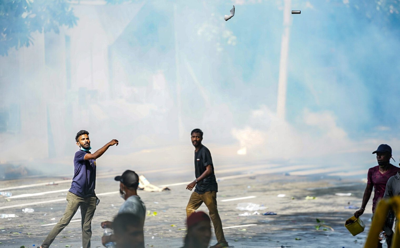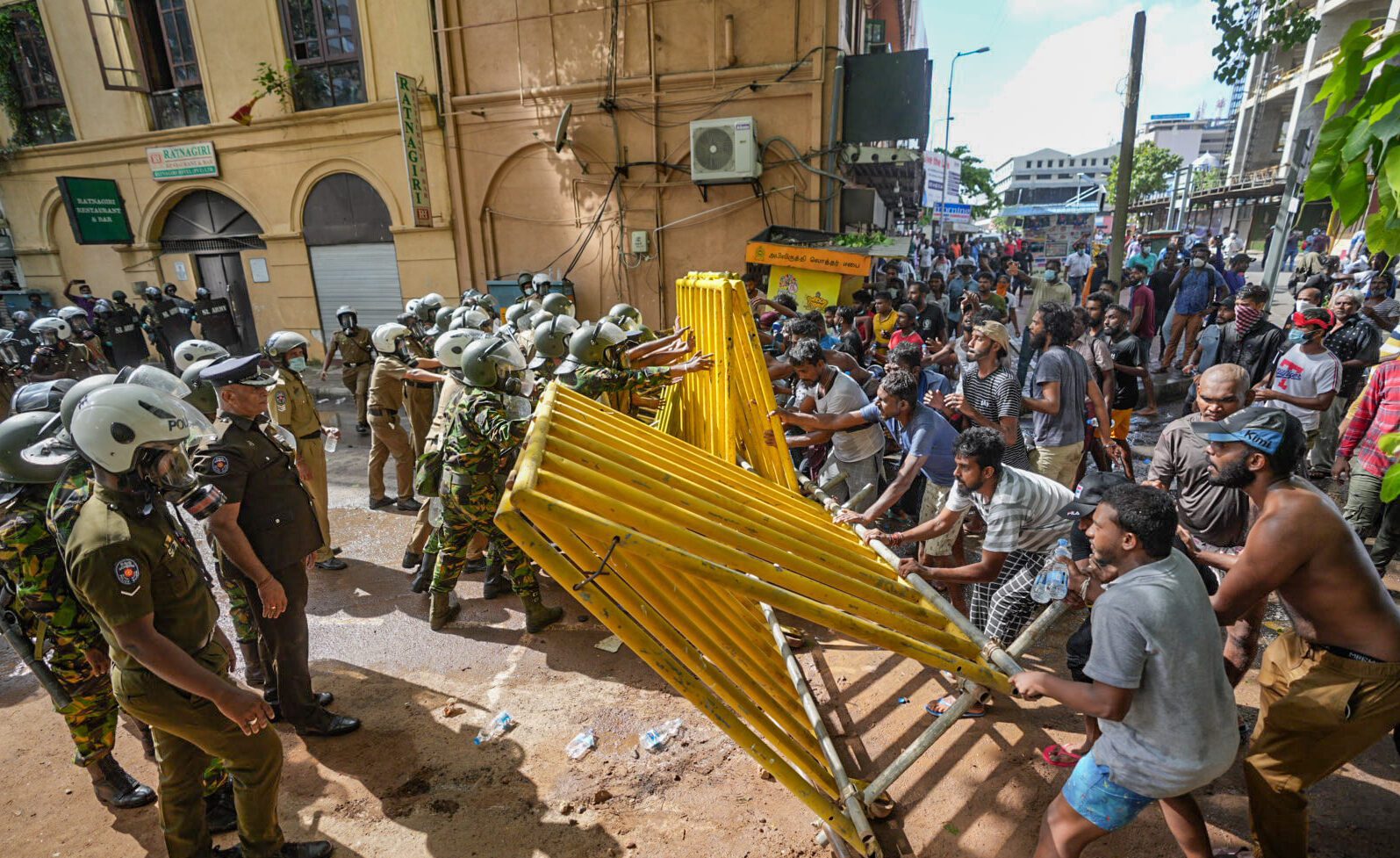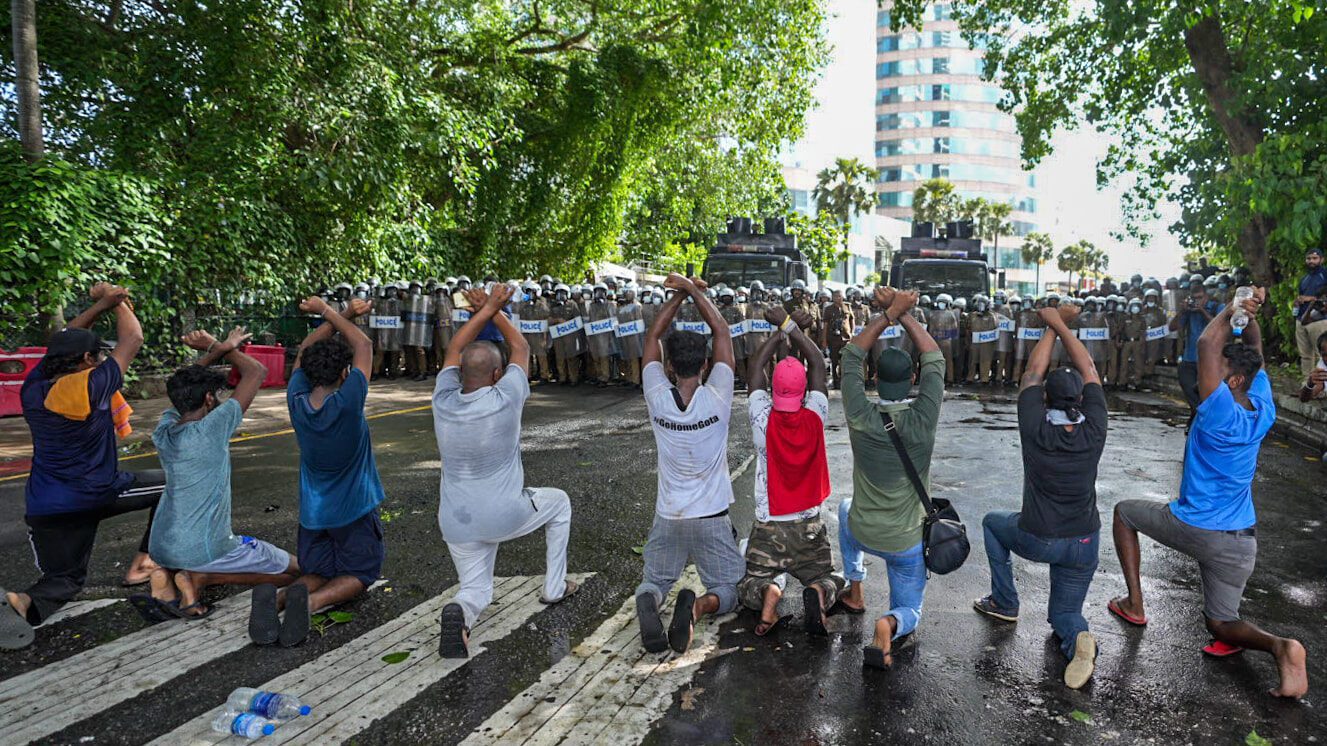 இவர்கள் கோட்டையில் உள்ள உலக வர்த்தகக் கட்டடத்துக்கு அருகில் உள்ள வீதி ஊடாக காலிமுகத்திடல் பக்கம் செல்ல முயன்றபோது, அந்த வீதியில் அவர்களைத் தடுத்து நிறுத்திய பொலிஸார், மாணவர்கள் மீது கண்ணீர்ப்புகைக் குண்டு மற்றும் நீர்த்தாரைத் தாக்குதல்களை மேற்கொண்டனர். எனினும், மாணவர்கள் பொலிஸாரின் தாக்குதல்களை எதிர்கொண்டு சிலமணிநேரம் அங்கு நின்று ஜனாதிபதிக்கு எதிராகக் கோஷங்களை எழுப்பினர்.