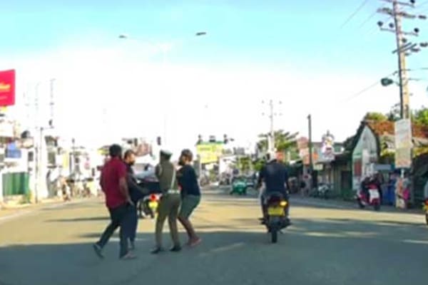 பொலிஸ் அதிகாரி முன்னால் அவர் இவ்வாறு தாக்கிய விதம் வாகனம் ஒன்றில் பொறுத்தப்பட்டிருந்த கமராவில் பதிவாகியுள்ளது.