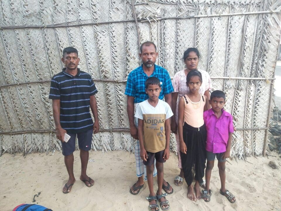 கிளிநொச்சியை சேர்ந்த உதயகுமார், ரோஜா, அவர்களது மூன்று குழந்தைகள் மற்றும் யாழ்ப்பாணத்தை சேர்ந்த நியூட்டன் நிர்மல் ராஜ் ஆகிய அறுவரே, பைப்பர் படகில் புறப்பட்டு இன்று அதிகாலை தனுஸ்கோடி, கம்பிபாடு கடற்கரையில் வந்திருங்கினர்.