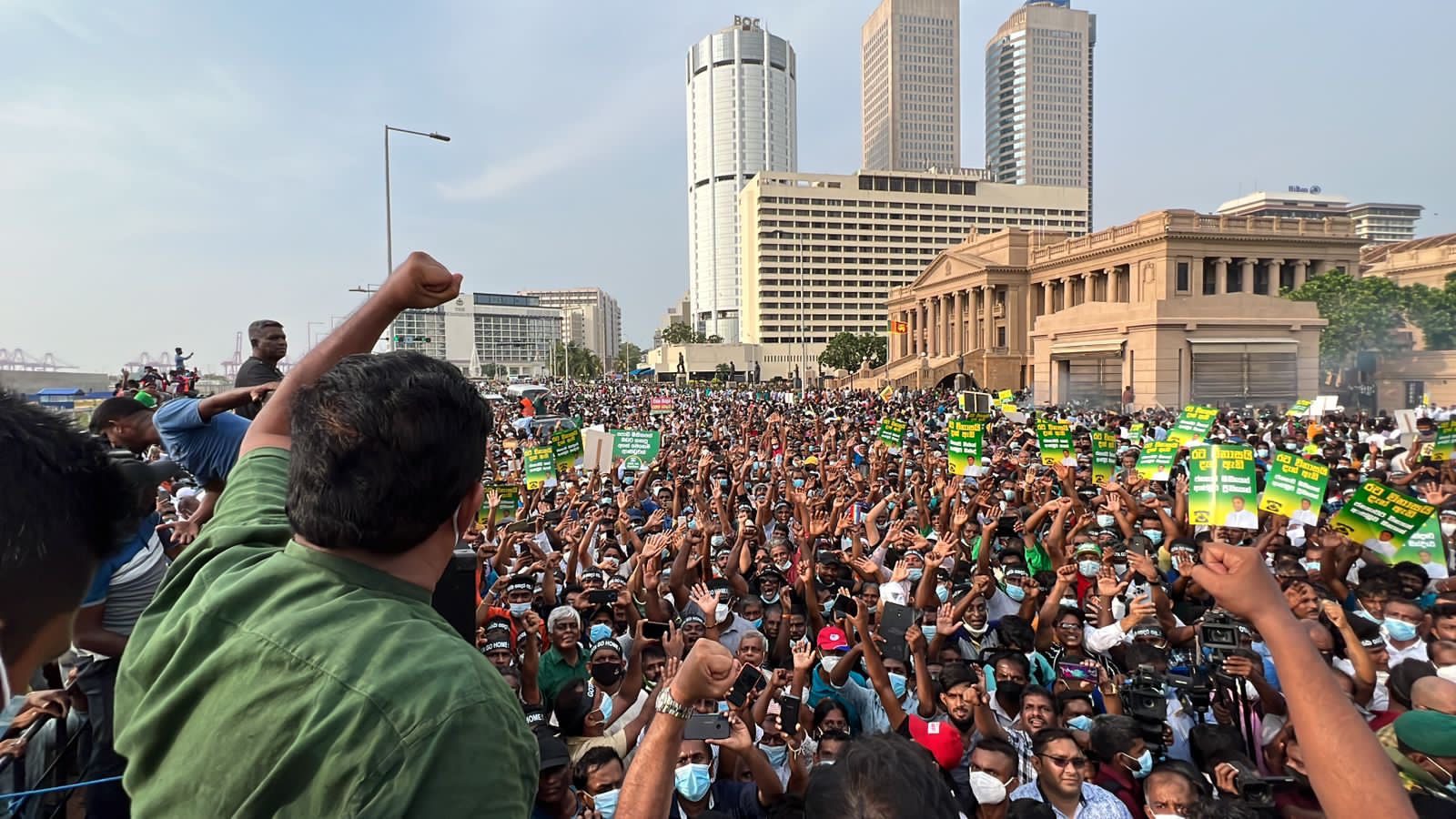 மக்களை இந்த நிலைமைக்குக் கொண்டுவந்த சூழ்ச்சிக்காரர்கள்தான் ராஜபக்ச அரசு – ராஜபக்ச குடும்பம். அந்த ஆட்சியை விரட்டியடிக்கவே நாம் அணிதிரண்டுள்ளோம். அந்த இலக்கை அடையும்வரை அறவழியில் எமது போராட்டம் தொடரும்.