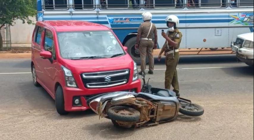 வவுனியா நகரில் இருந்து ஏ9 பிரதான வீதியூடாக பயணித்த கார், வவுனியா தெற்கு கல்வி வலயத்திற்கு அலுவலகத்திற்கு எதிராகவுள்ள வீதிக்கு திரும்ப முற்பட்ட போது குறித்த வீதியில் இருந்து வந்த மோட்டார் சைக்கிள் வவுனியா நகரிற்கு திரும்ப முற்பட்ட போது இரண்டும் நேருக்கு நேர் மோதி விபத்து இடம்பெற்றுள்ளது.
