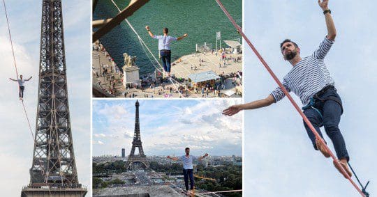 தற்சமயம் ஈபிள் கோபுரத்திலிருந்து 600 மீற்றர் தூரம் கயிற்றில் கடந்த வீரரின் சாகசம் மக்களை பெரிதும் கவர்ந்துள்ளது.