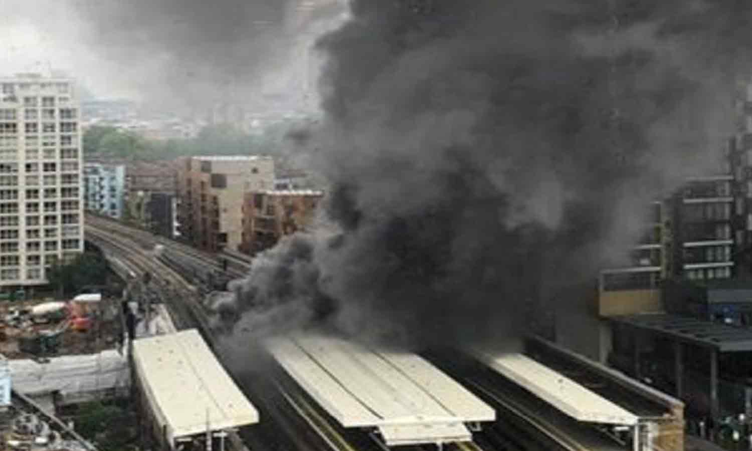 கொளுந்து விட்டு எரிந்த தீ, வாகனம் நிறுத்துமிடத்துக்கும் பரவியது. இதனால் ரயில் நிலையத்தில் இருந்து பல அடி உயரத்துக்கு கரும்புகை எழும்பியது.