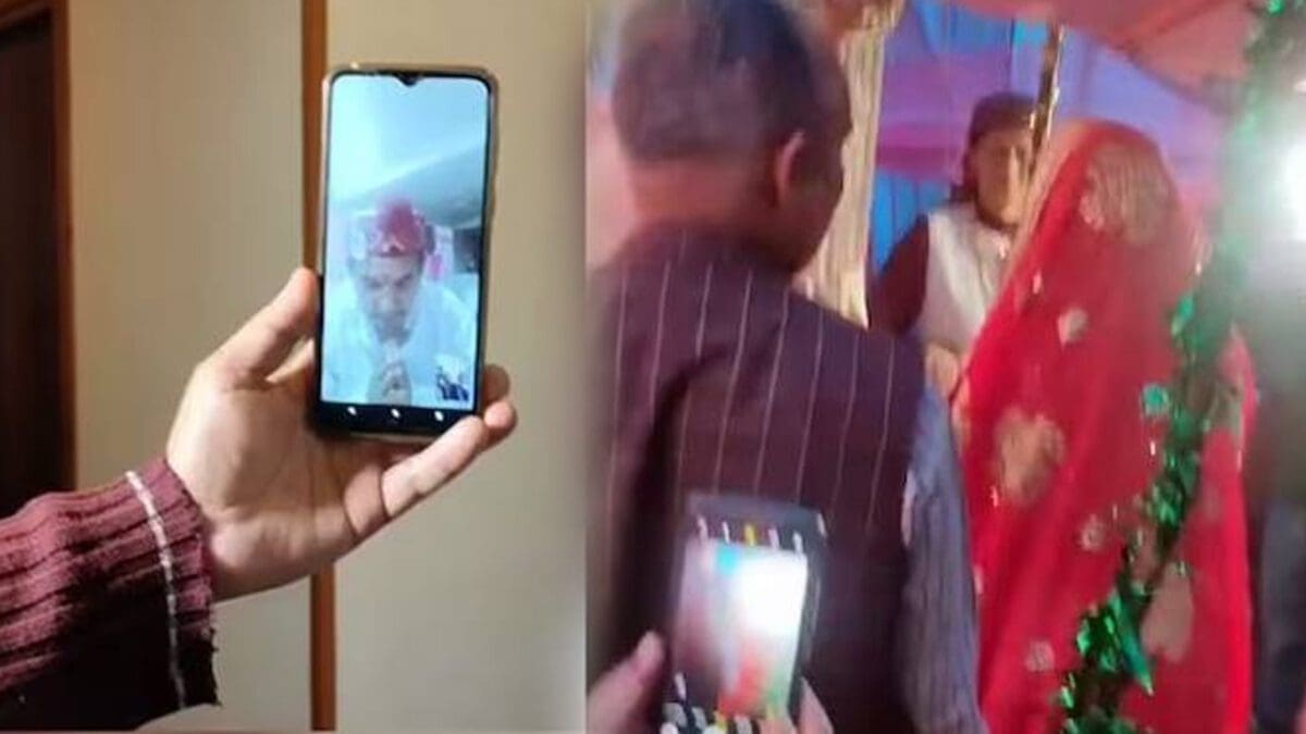 மோசமான வானிலையால் ஏற்பட்ட சிக்கலில், தம்பதிகளான ஆஷிஷ் சிங்கா மற்றும் ஷிவானி தாக்கூர் வீடியோ கான்பரன்சிங் மூலம் திருமணம் செய்து கொண்டனர்.