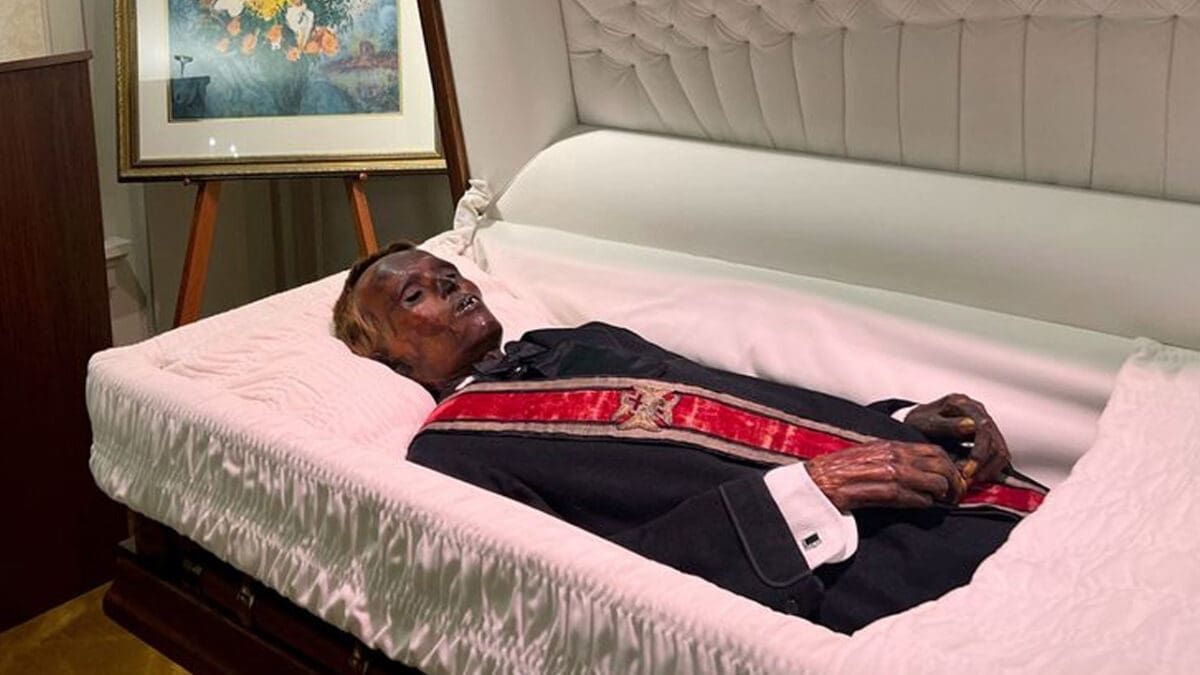 எனவே உடலை இறுதி ஊர்வலத்திற்கு எடுத்துச் சென்றனர். அரசு அனுமதியுடன் அங்கிருந்த ஊழியர்கள், அப்போது தங்களுக்கு இருந்த கொஞ்சநஞ்ச அறிவைக் கொண்டு இறந்த உடலை மம்மியாக மாற்றியுள்ளனர். அந்த மம்மி காட்சிக்கு வைக்கப்பட்டது. இந்த மம்மியைக் காண சுற்றுலாப் பயணிகள் அதிக அளவில் வந்திருந்தனர்.