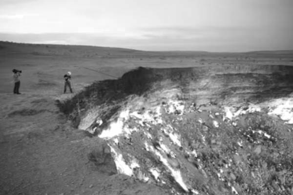 கடந்த 1971 ஆம் ஆண்டு, சோவியத் பொறியாளர்கள் துர்க்மெனிஸ்தானின் பாலைவனத்தில் இயற்கை எரிவாயு எங்குள்ளது என தேடிக்கொண்டிருக்கும் பொழுது அழிவு ஏற்பட்டுள்ளது.