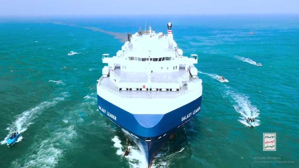 பாலஸ்தீனத்தின் காசா அமைப்பினருக்கு ஆதரவு தெரிவித்து எமன் நாட்டின் ஹவுதி கிளர்ச்சியாளர்கள் கேலக்சி லீடர் என்ற சரக்கு கப்பலை கடத்தியுள்ளனர்.